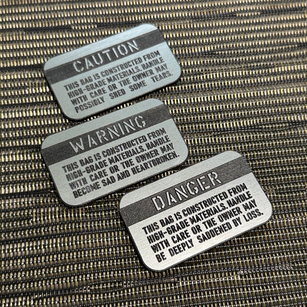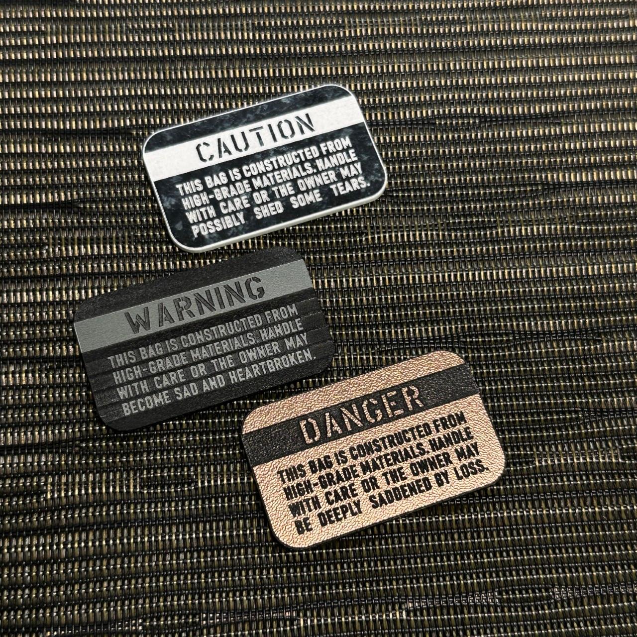 ◆ TUMIバッグ用◆ カスタムプレート CAUTION シルバーxブラック 30x50mm トゥミ 交換用 バッジ