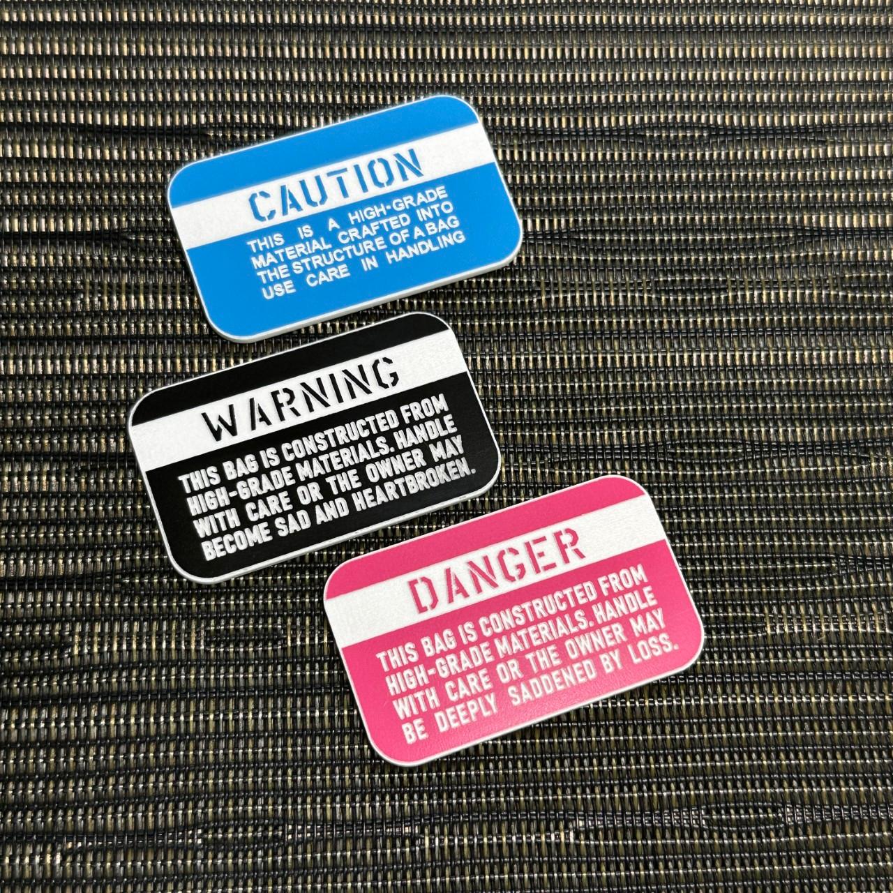 ◆ TUMIバッグ用◆ カスタムプレート WARNING シルバーxブラック ■ トゥミ 交換用 バッジ パッド
